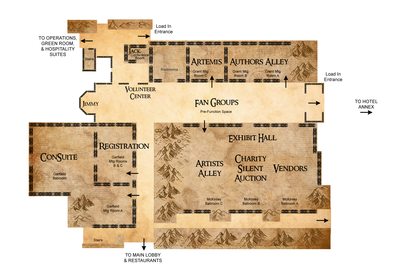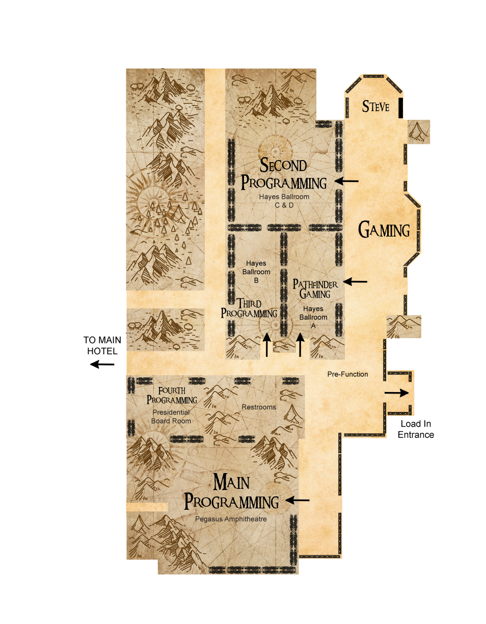 Location: Garfield D Friday 12:00pm- 9:00pm Saturday 9:00am- 10:00pm Sunday 9:00am- 2:00pm (room cleanup begins at 1:00pm) Always a place to hang out with fellow fans, the Consuite continues the tradition this year. Remember, the Consuite is not meant to provide three squares each day while at the convention. If you are looking for a well-balanced meal, we suggest you check out the hotel restaurants. Room may close early based on usage.