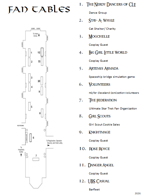 Location: Room 185 (Athens) Friday 4:00pm- Midnight Saturday 24-hours Sunday Midnight- 2pm Known as the department that never sleeps, Ops and Security are there to help with questions and concerns. Lost your tribble? Want to volunteer for the con? Need directions? The folks in Ops are there to help. Our Security staff will man the doors at Main Programming and elsewhere to check for con badges. Please be considerate and follow directions.